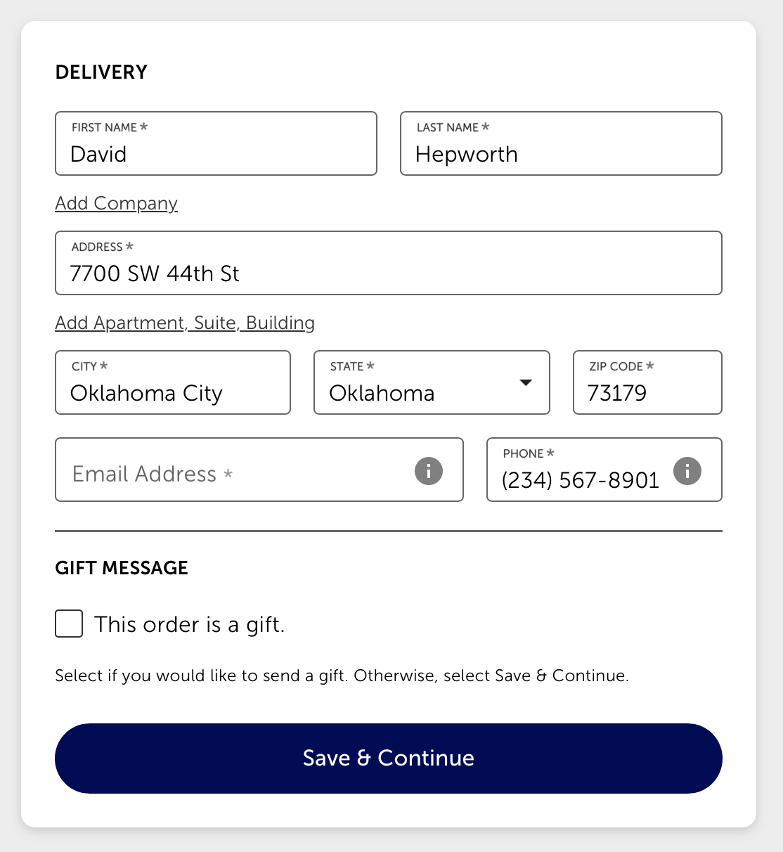 I designed comprehensive input, textarea, and select fields to use across the site. These new input fields offer greater control over the type of text a customer can add, improve error handling, and ensures data conforms to business expectations. Additional features include better keyboard navigation, dropdown searching, and add-ons elements like tooltips and Places Autocomplete from the Google Places API.