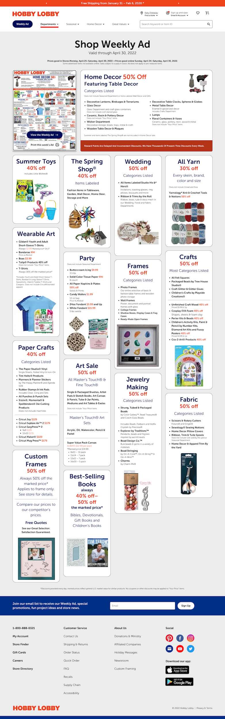 The Hobby Lobby Weekly Ad, an important element in the retail in-store shopping experience, lacked a proper digital representation on the website. I designed in Figma a web layout that digitizes the print advertisement for easier access and readability.