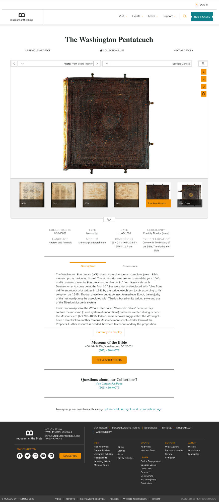 While the design of the site and the Collections tool have undergone changes, the fundamental system is still live at museumofthebible.org.