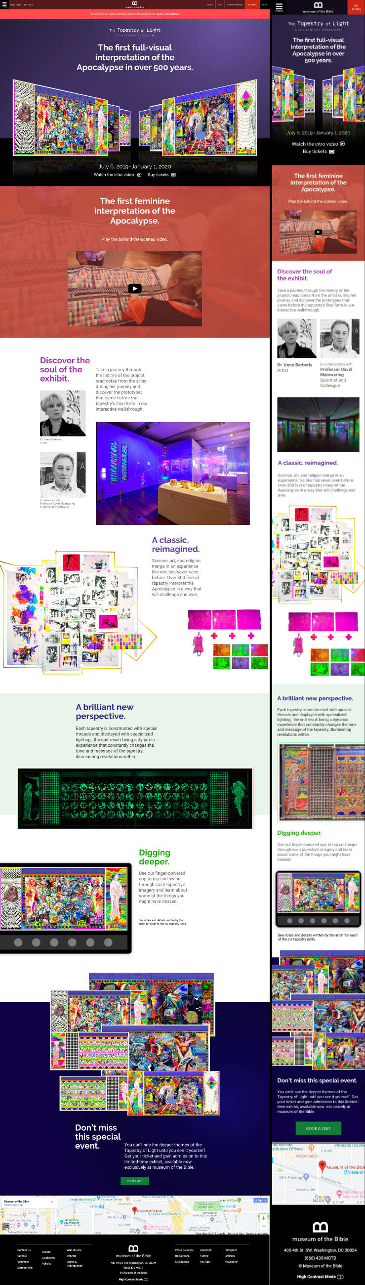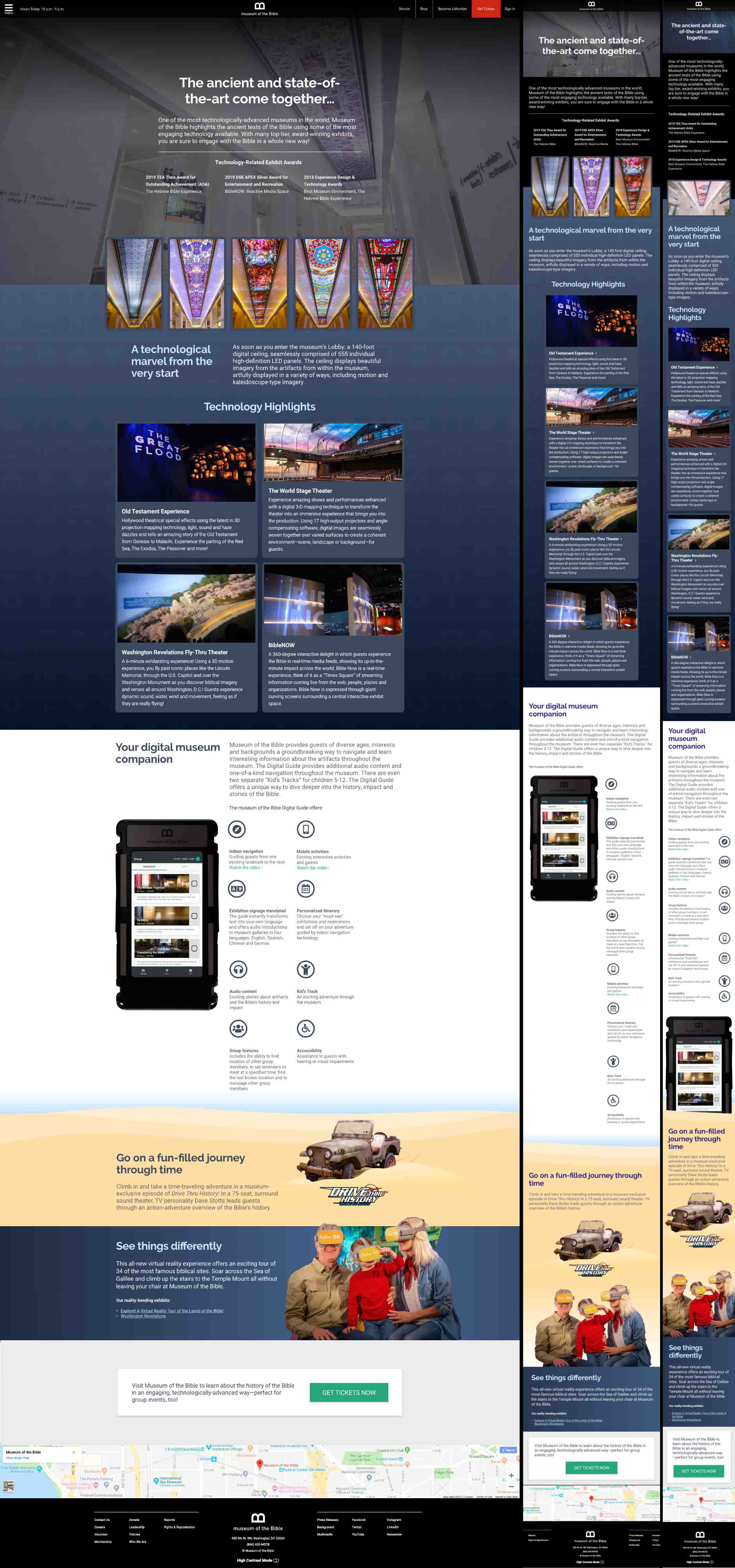 A temporary exhibit at Museum of the Bible was showcased through an Adobe XD design. The development team produced the page, it was approved, but development never completed in time for release.