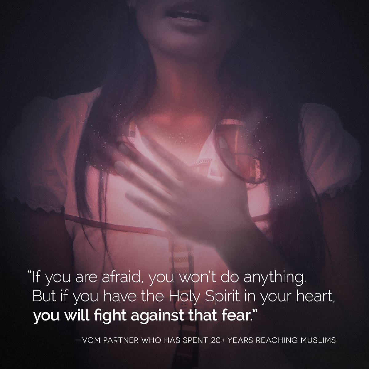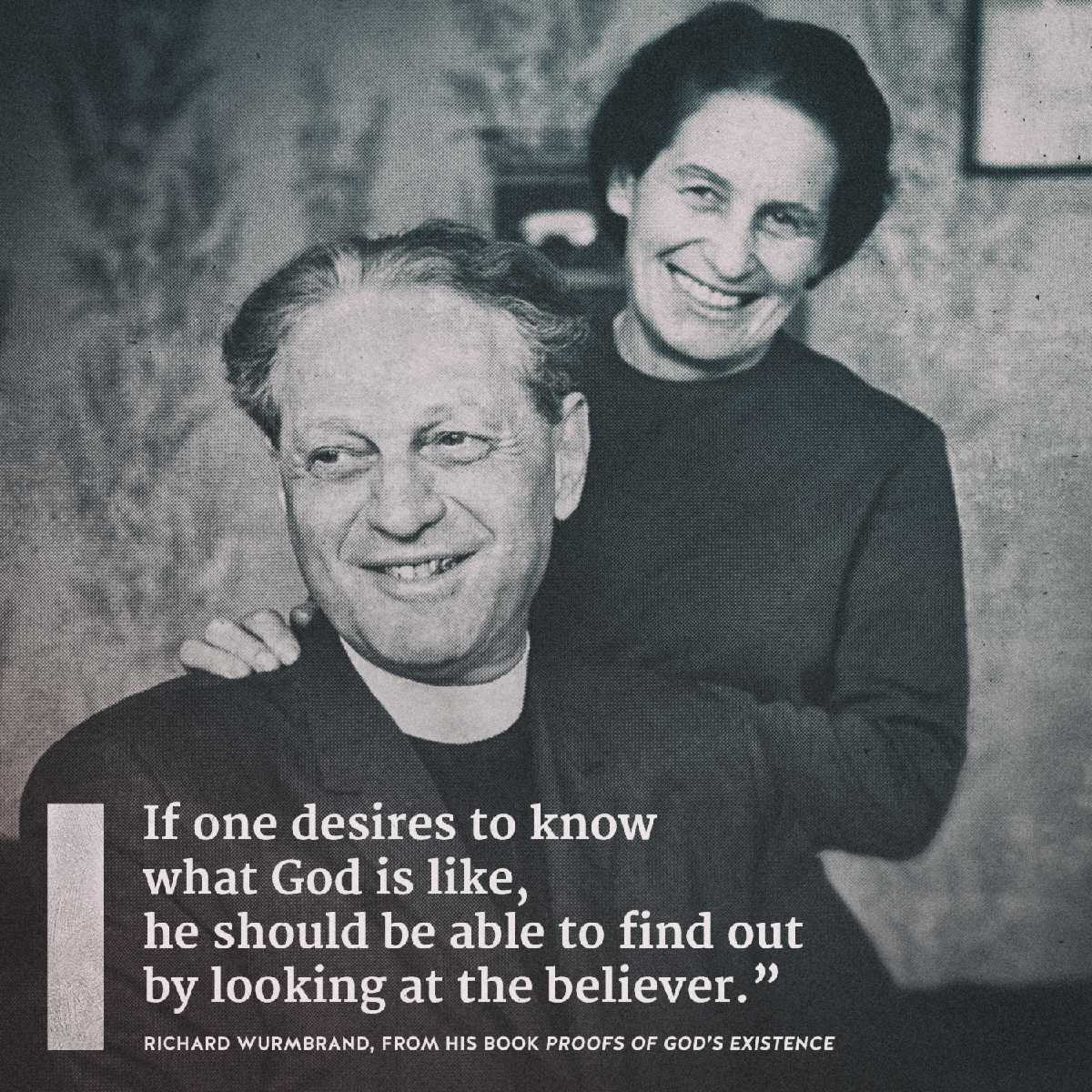 A digitally edited photo of the husband and wife founders of VOM, paired with a quote from one of the husband’s books.