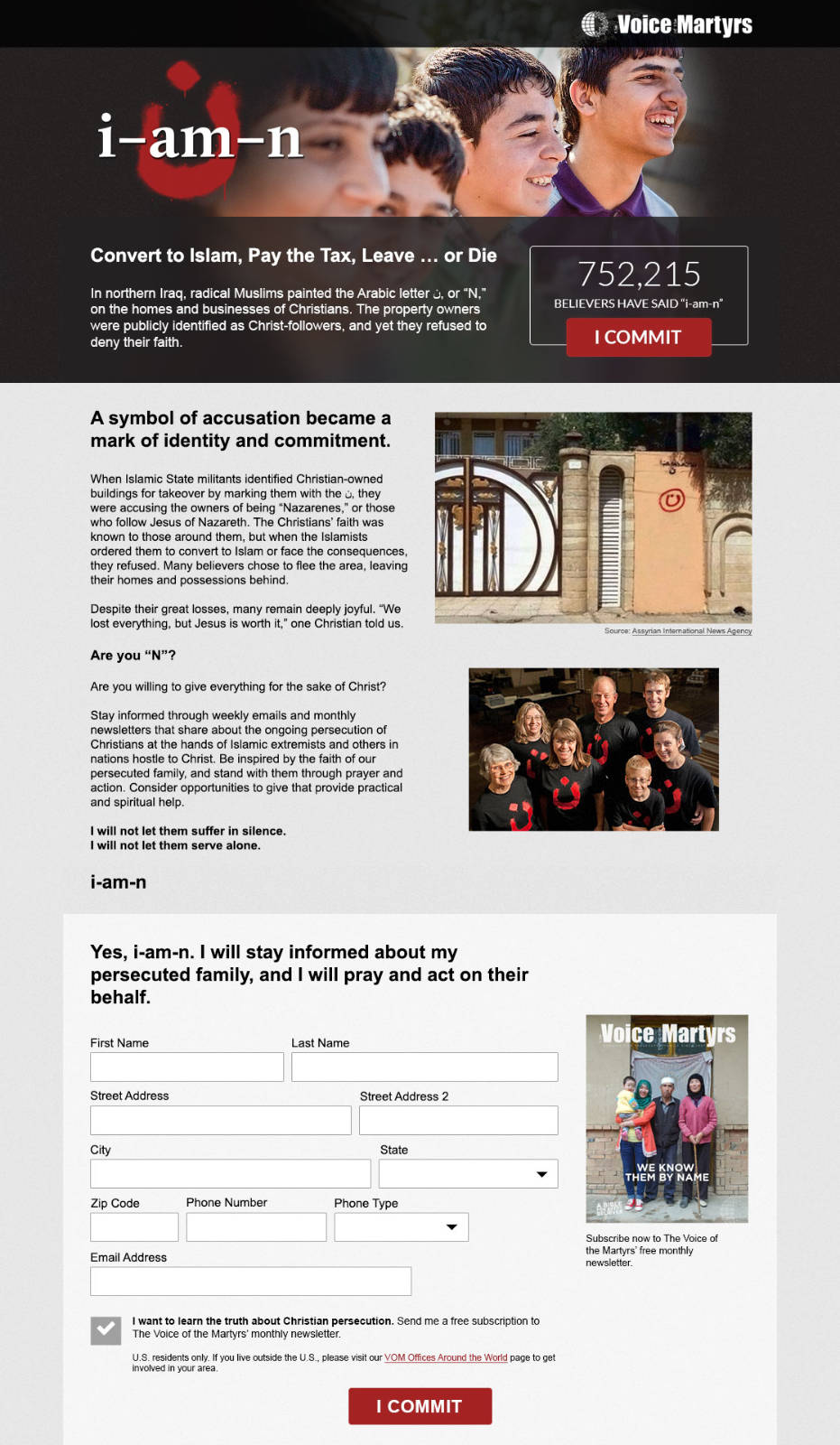 I designed the campaign landing site for the “I Am N” campaign. The site was intended as the final stop in a print and digital campaign managed by other parts of the organization.