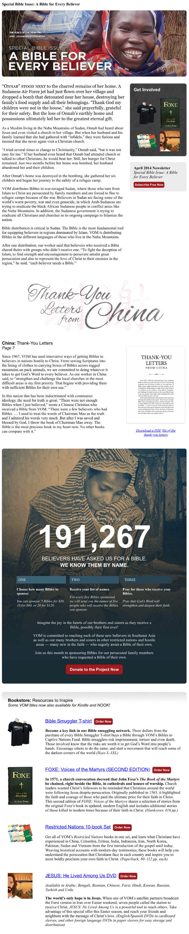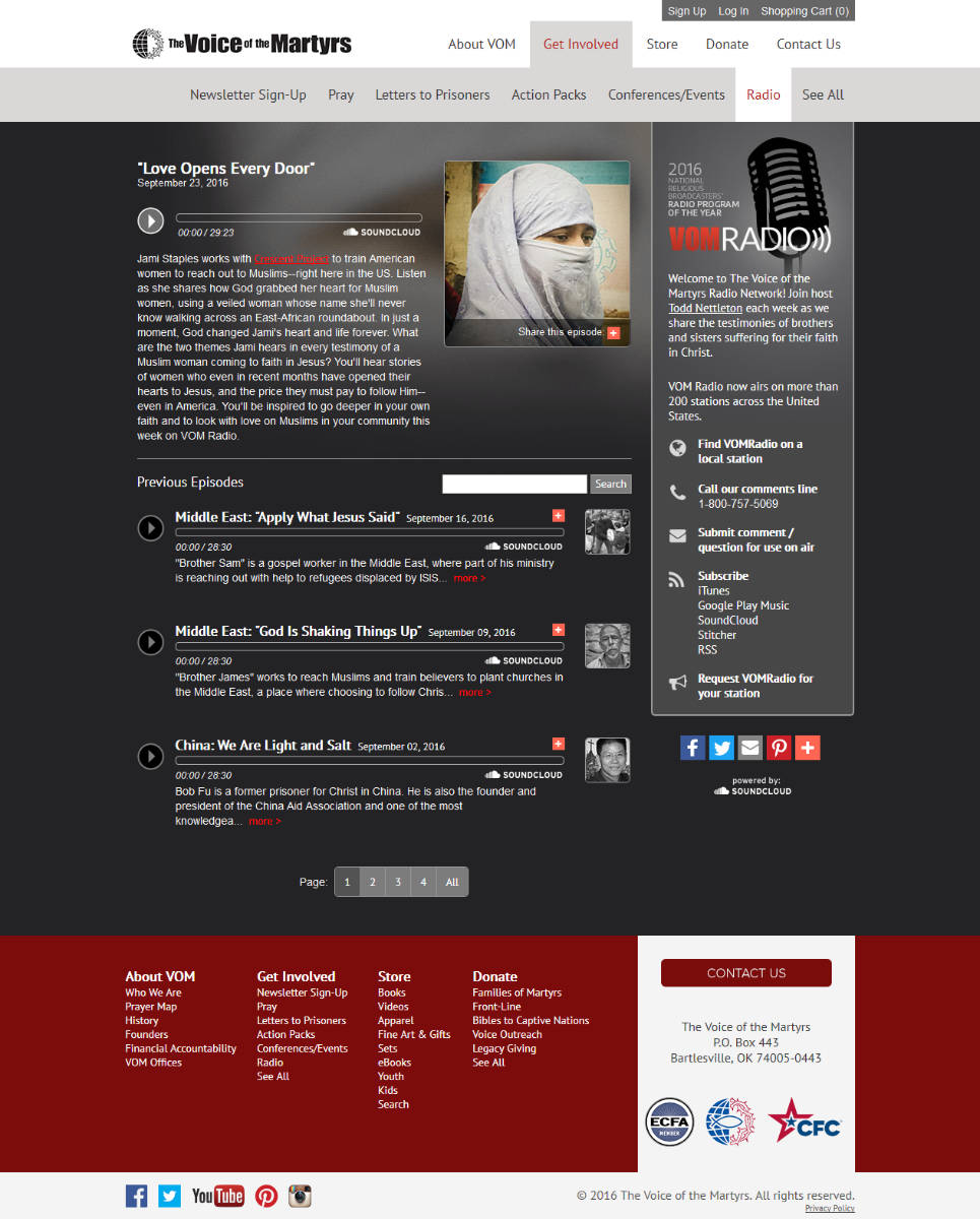 I produced and hosted the Persecution Podcast, VOM’s official audio program. I released the podcast with artwork for each episode on its website and major podcast platforms.